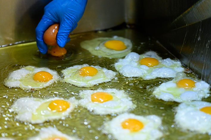 อาหารที่ผลิตจากครัวร้อนของเราใช้คนทำในทุกขั้นตอน ซึ่งทุกคนได้รับการฝึกฝนจนชำนาญและมีทักษะ อย่างเช่นเมนูไข่ออมเล็ตอาหารเช้ายอดฮิตของสายการบิน และสิ่งที่สำคัญในแต่ละขั้นตอนคือความคงที่ ทั้งส่วนผสม รสชาติ รูปแบบ รวมถึงอุณหภูมิในการจัดเก็บเพื่อรักษาอาหารให้ถูกสุขอนามัยก่อนส่งถึงมือผู้โดยสาร